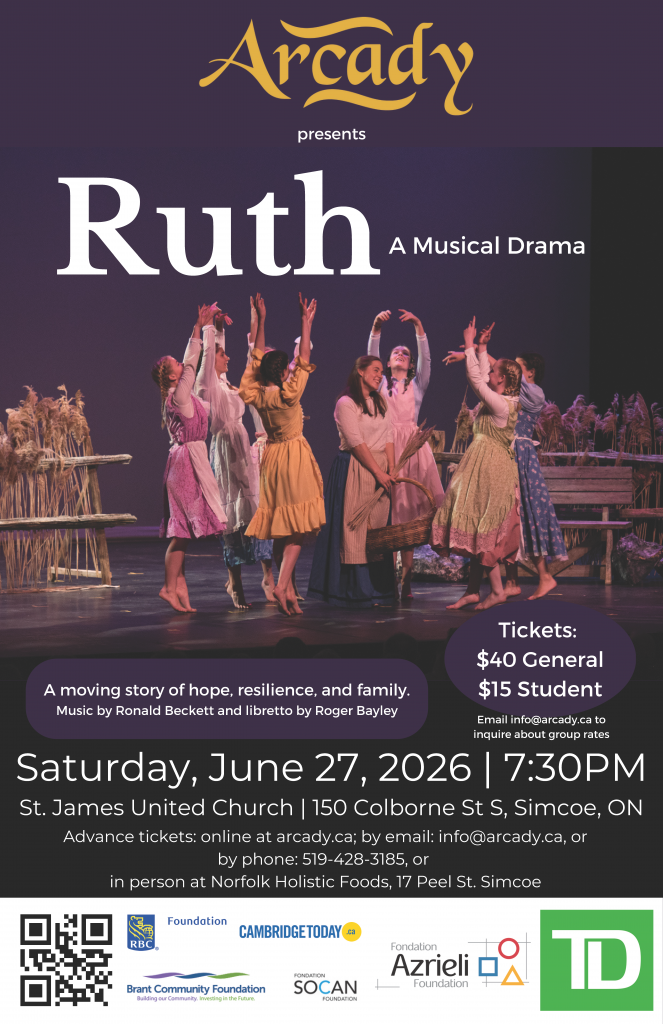 Ronald Beckett has had numerous compositions performed by ensembles throughout Ontario. He has written three operas that constitute a trilogy: Ruth, John, and I Am…. that have been given fully staged performances by Arcady and Queens Student Opera. Ruth, due largely to its length (72 minutes) and facility of staging, has received some twenty performances since its premiere in 1996. Ron’s catalogue of compositions includes a number of additional large-scale works for orchestra or orchestra and chorus and an abundance of chamber music and pieces for piano and organ. Since 2008, he has written a great number of songs and music for youth, specifically for the Arcady Youth Singers.